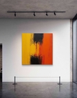 Абстрактна картина в яскравих відтінках червоного, помаранчевого, жовтого та чорного кольорів, що втілює силу енергії та внутрішній рух. Глянсова поверхня створює відчуття тепла, динаміки й легкого потоку енергії що вже не може стриматися в рамках.. Це сучасний живопис про пристрасть, дію та момент, коли енергія перетворюється на творчість і зігріває внутрішнім світом навіть того хто не відчуває тепла.Абстракція в стилі мінімалізм " Вогняний пульс"- авторська картина для осені як нетрадиційний засіб подолання сезонної депресії разом із горнятком горячого шоколаду та соковитим помаранчем.