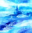 Абстрактний пейзаж«Крижаний палац» — атмосферна абстрактна картина у холодній гамі синіх, бірюзових і білих відтінків. У глибині композиції крізь туман і водяну гладь проступає силует фантастичного замку, що нагадує крижаний палац серед безкрайніх холодних вод.
