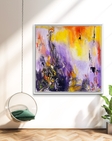 Абстрактний живопис, який створювався в перше літо війни. Перше і далеко не останнє. Картина в якому краса літнього луга та спекотного неба над ним затьмарює гар пожежі війни та опалені польові квіти.Яскраві барви,насичені кольори, повністю авторський сюжет від людини яка вже три роки живе війною, як може волонтерить і більше за все малює саме війну бо інші думки та сюжети не находять такого відгуку в серці.Абстракція "Українське літо" є в наявносіт, декорована білою рамою, має розмір 50*50 см . Картина на холсті приймала участь у художніх виставках та отримала схвальні відгуки критиків.