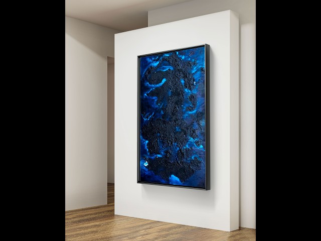 Справжня розкіш повна краси і таємниці розкриває свої секрети тому хто вдивляється в глибину чарівного Древа Життя, що розпускає свої гілки за бажанням нічного вітру. Просте і виграшне поєднання глибокого чорного кольору ,королівського сапфіру і флеру блакитного дають дивовижний за силою впливу абстрактний живопис з мармурової текстурної пастою в основі.